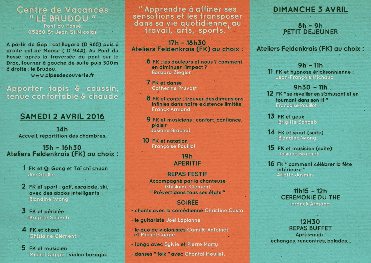 • Ateliers Méthode Feldenkrais semi-réguliers à Menglas (MENS).