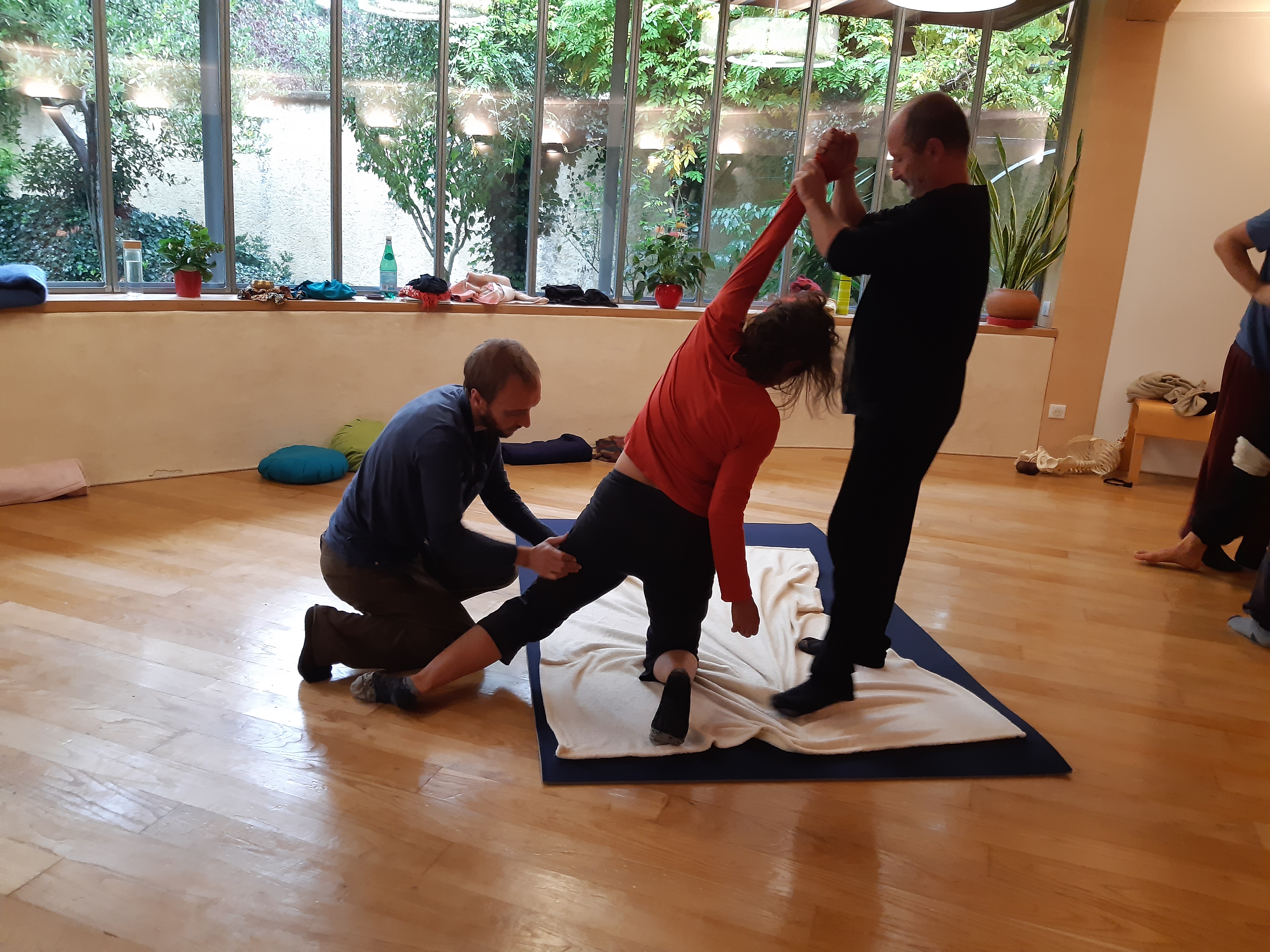 He has been passionately exploring movement, touch and improvisation since 1998. When he immersed himself in contact improvisation, it took him both in breadth and in depth. He spent a full year as a postgraduate in 13 countries performing, teaching and studying the differences between contact improvisation in different cultural contexts. He helped to create a contact improvisation community in Grenoble (France) and danced extensively with Tumblebones in Boulder ( USA ). He teaches contact improvisation, but is also a Feldenkrais Method teacher, and a professional bodyworker including shiatsu, massage and somatic teaching. His passion is to support the transmission and development of somatic wisdom and thus nourish the deepest roots of happiness. His approach to teaching encourages the process of transformation and learning while maintaining a deep respect for people who are finding their own path.